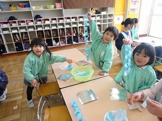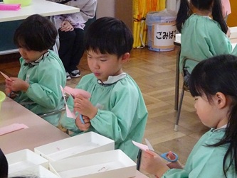 1月28日(水)輪飾り作り、がんばっています-年少さん-