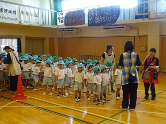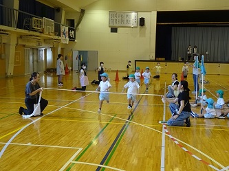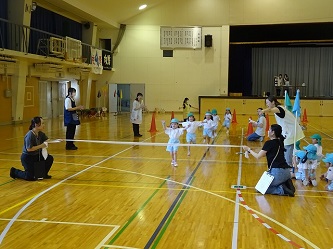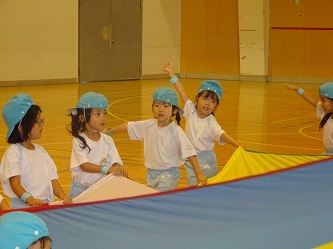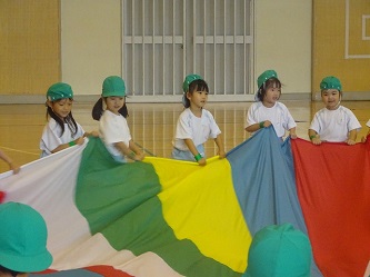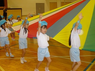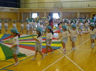 年中さんは、「かけっこ」と「パラバルーン」を行いました。