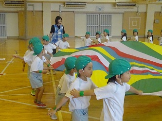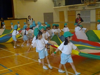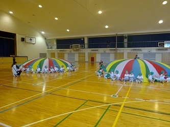 広い体育館で思いっきり走ったり、「パラバルーン」のいろいろな技を成功させたりました!