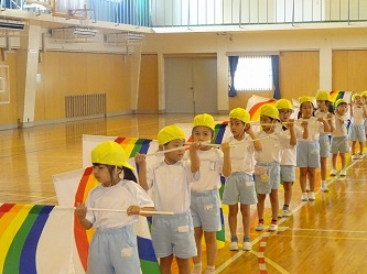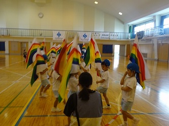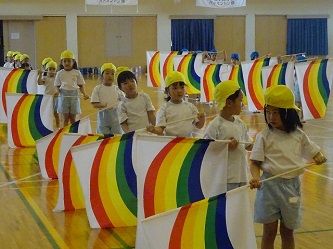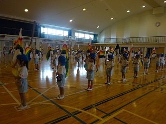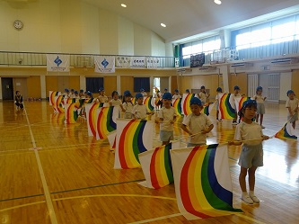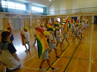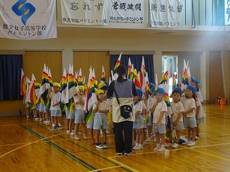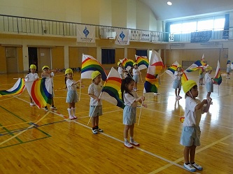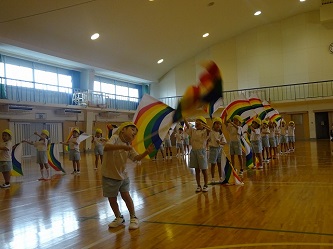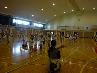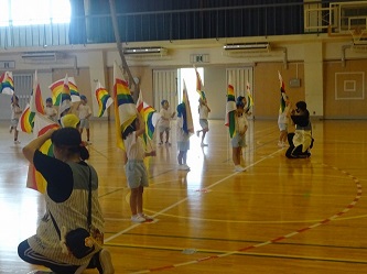 9月22日(月)年長さんは、高校の昼休みの時間に高校の体育館で練習をしました。2日間お休みでしたが、みんな、「カラーガード」の動きをよく覚えていました!練習の積み重ねの成果ですね!