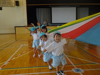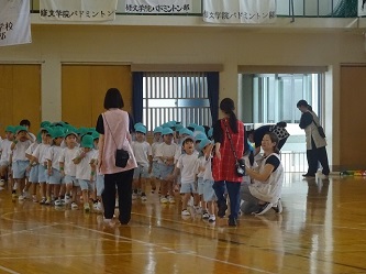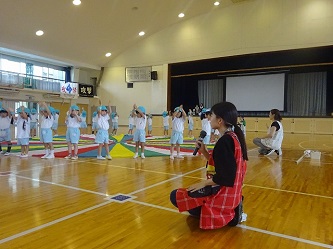 9月25日(木)、高校の体育館で、年中さんも運動会の最後の練習をしました。