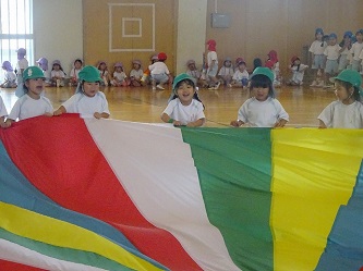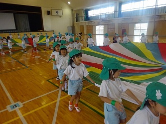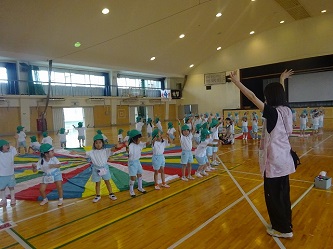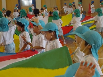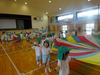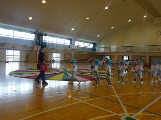 学級のみんなで協力して、「パラバルーン」のいろいろな技を成功させていました!