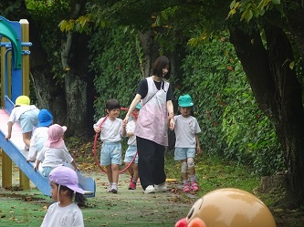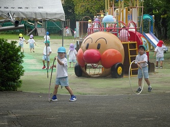 朝、園庭で遊ぶことができるようになり、子どもたちは喜んでいます!