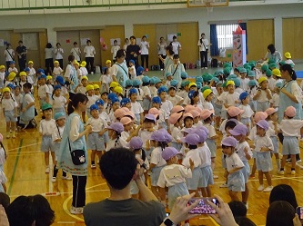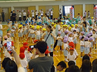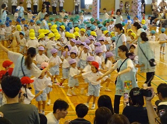 練習については、幼稚園の遊戯室を始め、大学の多目的ホール(大学がお休み期間)や高校の体育館(昼休みの時間)で、エアコンが効いた場所で、少しずつ、本番に向けて、いろいろな動きや技の習得、玉入れやかけっこ、リレーも含めて、がんばってきました。