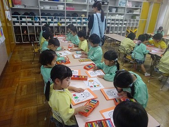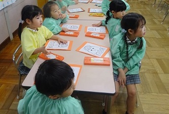 10月7日(火)、年中さんは『冬の発表会』に行う「オペレッタ」の配役を決めていました。