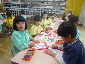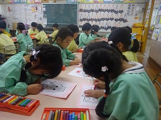 決定後は、それぞれの配役のグループに分かれて、キャラクターの色塗りを楽しそうにしていました!