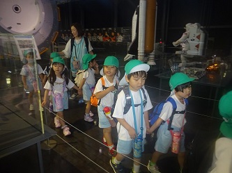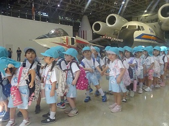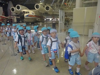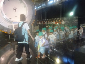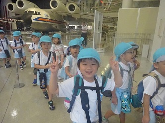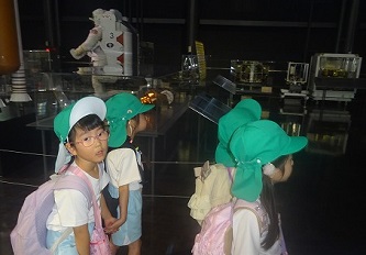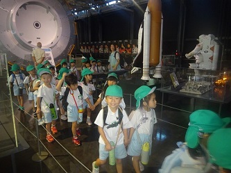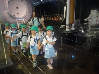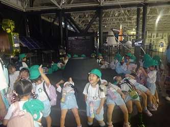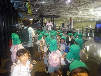 「岐阜かかみがはら航空宇宙博物館」では、飛行機だけでなく、宇宙船も展示されていました。子どもたちは飛行機の大きさに驚いたり、宇宙船を興味深く見たりしていました。