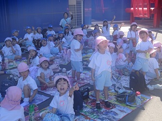 これまで「遠足ごっこ」を行い、手をつないで歩くこと、整列すること、お弁当を食べるためにシートを出したりしまったりすることなど、いっぱい練習してきました。