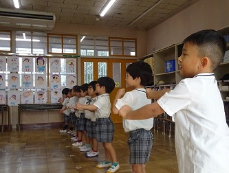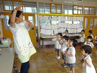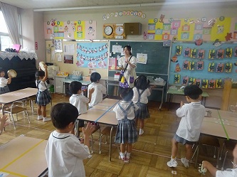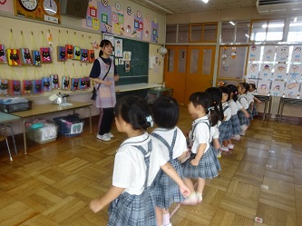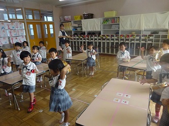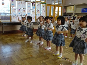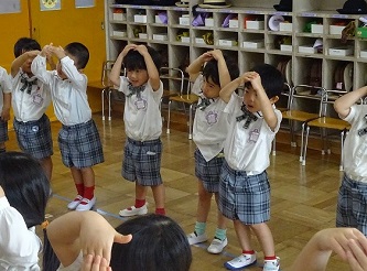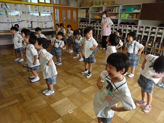 子どもたちは、先生の話をよく聞いて、動きをよく見て、音楽に合わせて、楽しそうに踊っていました!