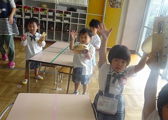また、先生の話をよく聞いて、音楽に合わせて楽器を鳴らしていました!