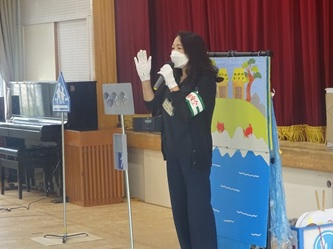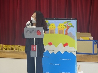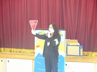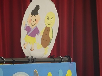 次に、浦島太郎の物語を基に交通安全についての劇を見せていただきました。