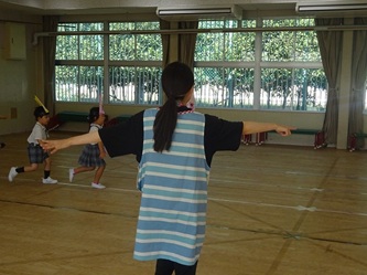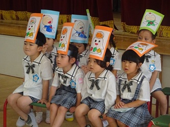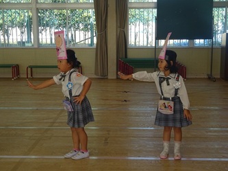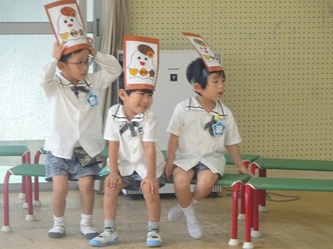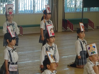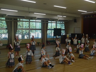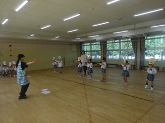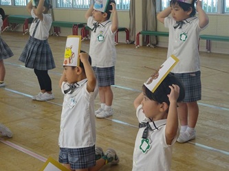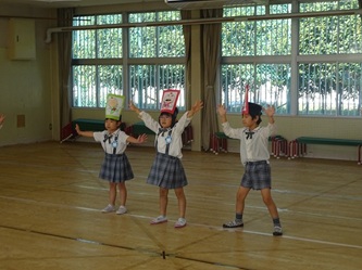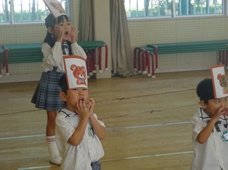 年中さんは、遊戯室で「冬の発表会」の「オペレッタ」の練習をしていました。