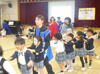 遊園地の場面遊びでは、コーヒーカップやジェットコースターで遊んだりしました。