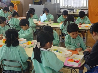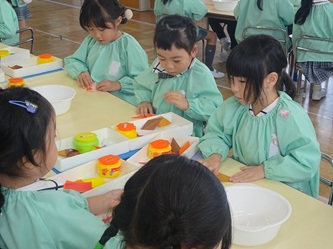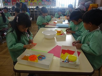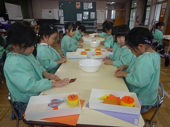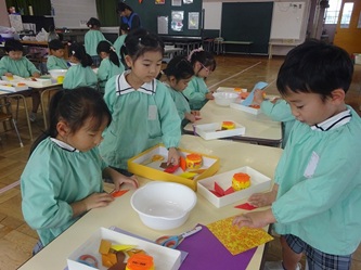 年長さんの部屋では、11月の壁面を飾る作品作りを行っていました。