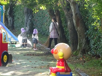 朝の風景です。園庭に落ち葉が目立つような季節になってきました。