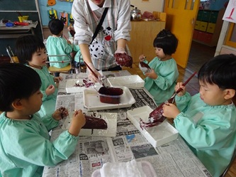 みんな、一生懸命、塗っていました!