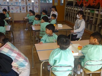 なお、本日の午前中、短大の学生と先生が、園見学に来ていました。