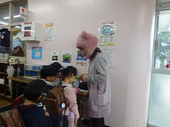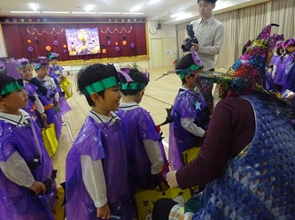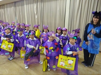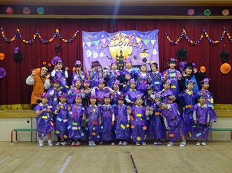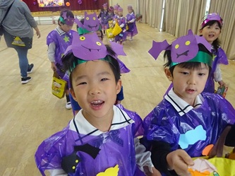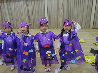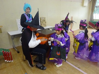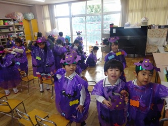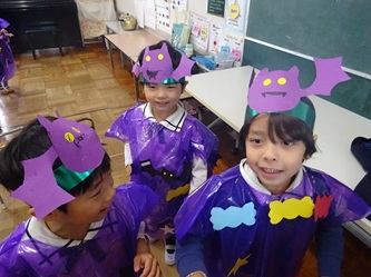 部屋では、一人一人が作った「ハロウィーン」の衣装に着替えました。