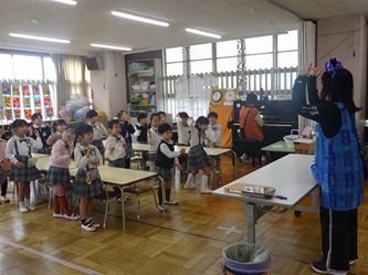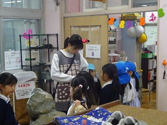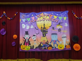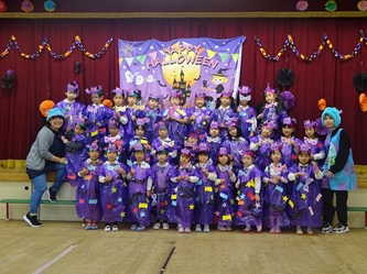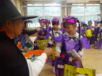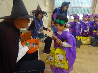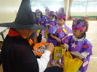 朝からいろいろな先生に「トリックオアトリート」と合言葉を言って、カードや折り紙やシールなどをもらっていました!