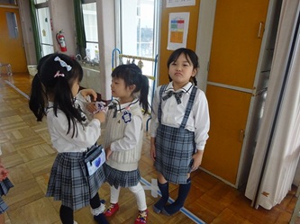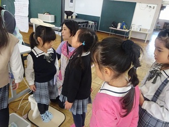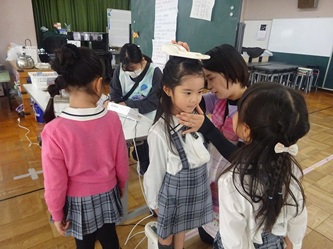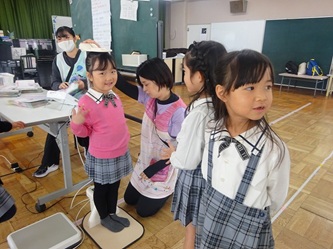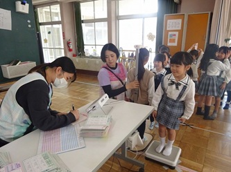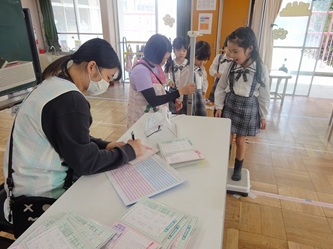 順番に並んで、先生方に身長と体重を測定してもらっていました。