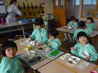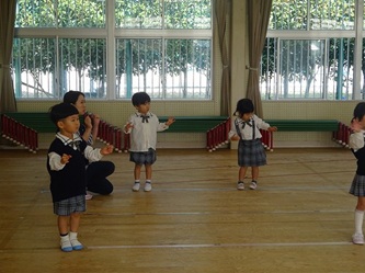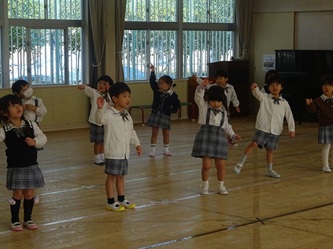遊戯室では、今月末にある「冬の発表会」に向けて、遊戯の練習を行っていました。