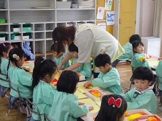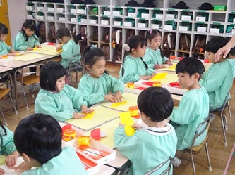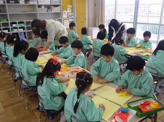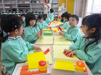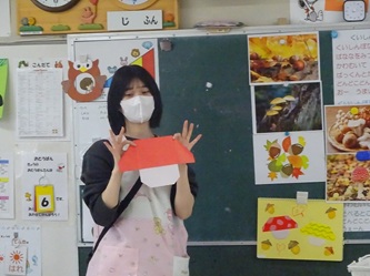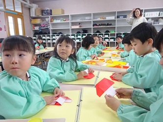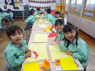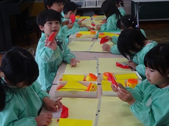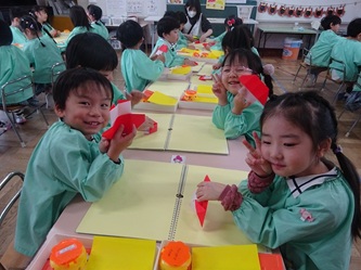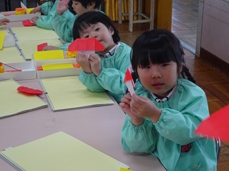 先生から折り紙の折り方を教えてもらい、みんな、一生懸命に折っていました!