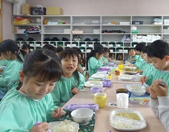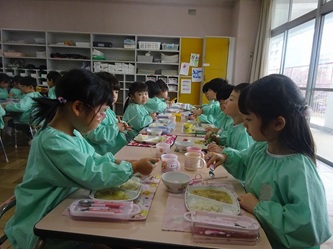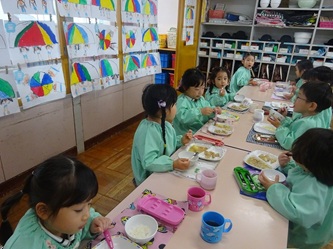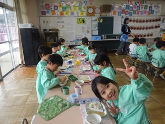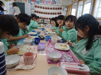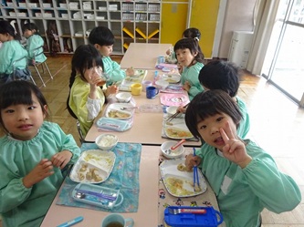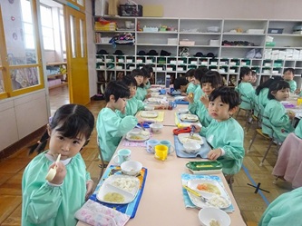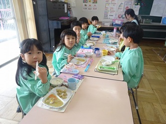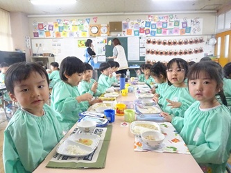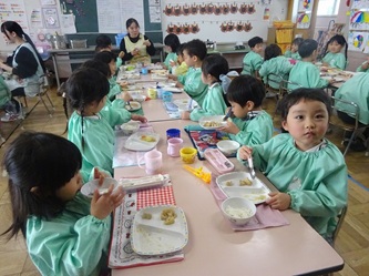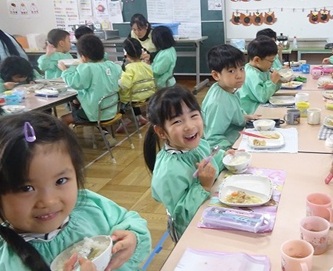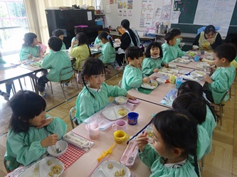 「おれんじやさん」の温かい給食を、おいしくいただいています!