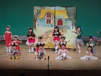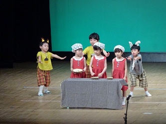 一斉の「遊戯」が発展して、「オペレッタ」となり、みんなで楽しい劇を創り上げました! 年長のセリフのある「劇」につながっていきます。