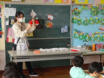 年少さんは、12月の制作あそびで「サンタクロース」を作っていました。