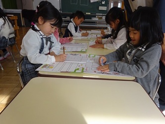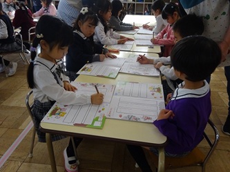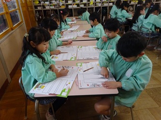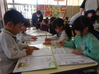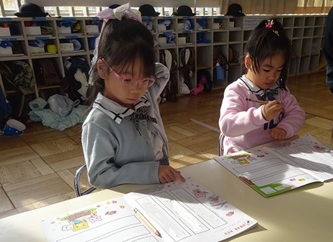 年長さんの部屋では、自分の名前を「ひらがな」で書く練習をしていました!