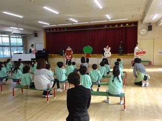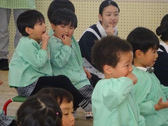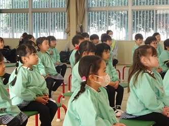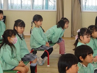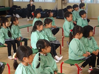本日、歯科衛生専門学校の先生と学生さんが、一宮幼稚園にやってきて、年中さん対象に「歯みがき教室」を開催していただきました。