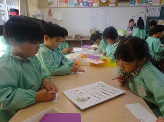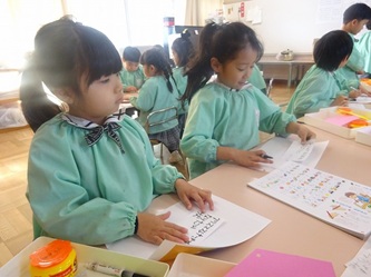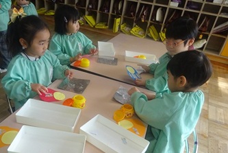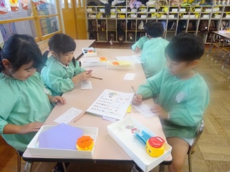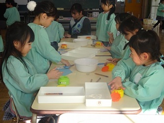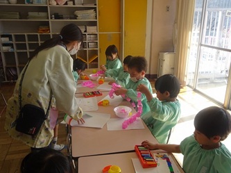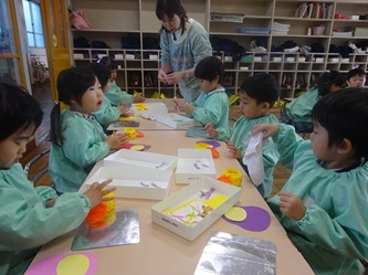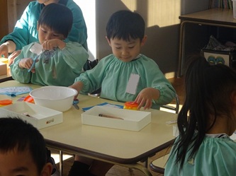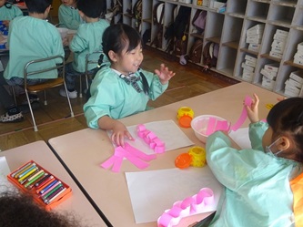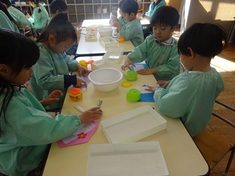 年長さんは、一生懸命に「絵馬」を作っていました。