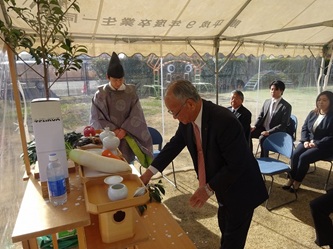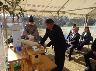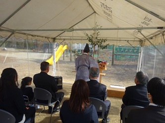 本日、真清田神社の神職の方にご来園いただき、関係者が集まり、「遊具安全祈願祭」を行いました。