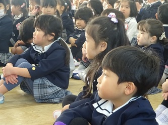 冬休みの園長先生との3つの約束が守れましたか?約束の「お手伝いをしよう」では、子どもたちから、お風呂掃除やトイレ掃除のお手伝いをしたことを発表してくれました。3学期も一宮幼稚園の合言葉「あかるく なかよく たくましく」を心がけ、一日一日を大切に過ごしていきましょう。特に「ちょうせん」すること、「なかよく」することを心がけ、素敵な3学期にしていきましょう。
