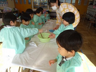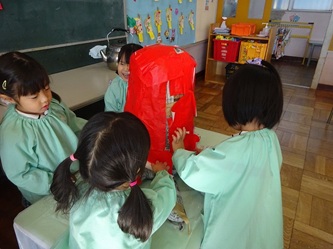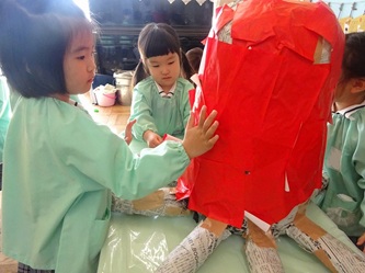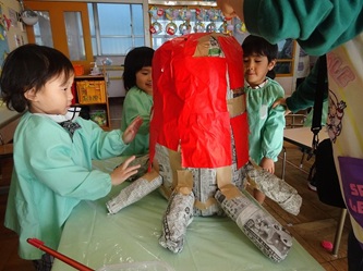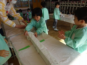 身体測定をしたり、本を見たり、幼稚園祭(作品展)に向けて、みんなで共同作品を作ったり、・・・。それぞれ取り組んでいました!