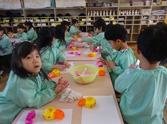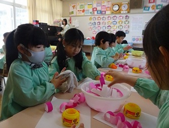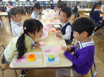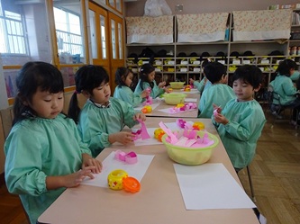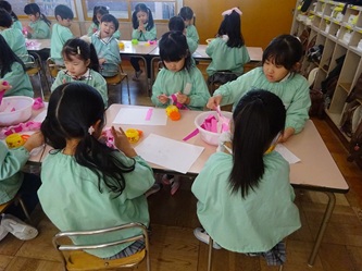 幼稚園祭(作品展)に向けて、みんなで取り組んでいました。