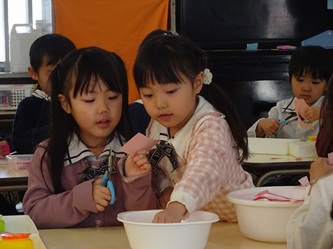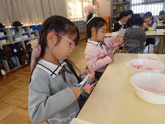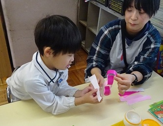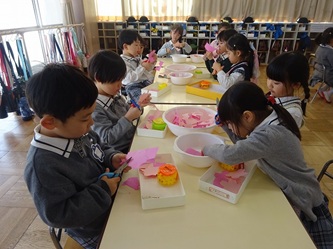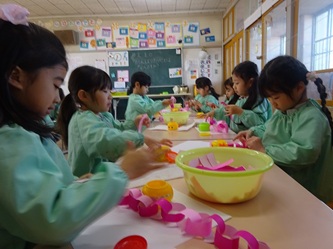 輪飾りを作ったり、桜の花びらを切り抜いたり、楽しそうに集中して取り組んでいました!