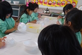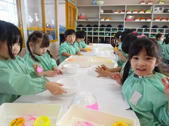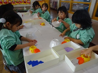 年中さんの部屋では、「立体作品」作りが進められていました。