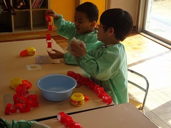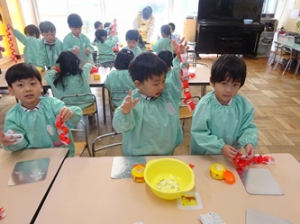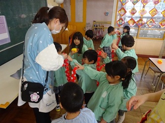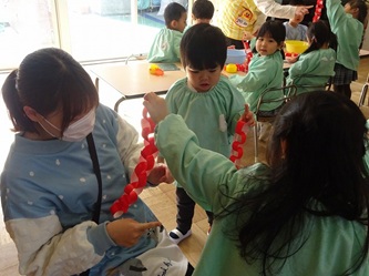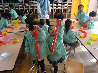 年少さんの部屋では、「輪飾り作り」が行われていました。