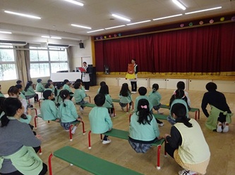 子どもたちは、興味深そうに、そして、楽しく話を聞いていました。