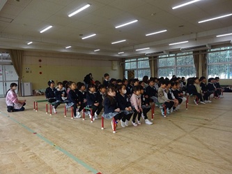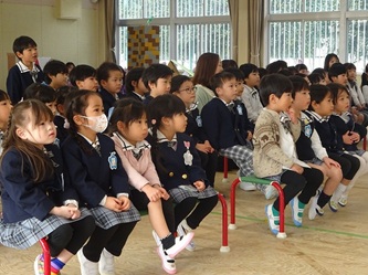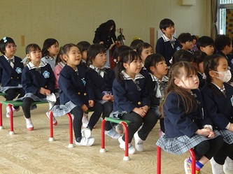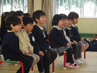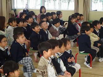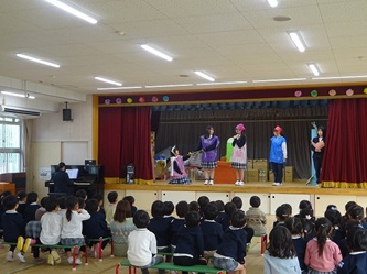 本日、年中さんを対象に、修文学院高校家政科の3年生の生徒さんがやってきて、寸劇を披露してもらいました。
