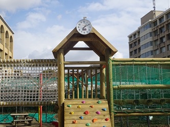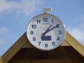 創立70周年記念として「保護者会」の皆さんから「電波ソーラー時計」を新しくなった「園庭木製遊具」に取り付けていただきました!