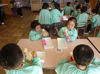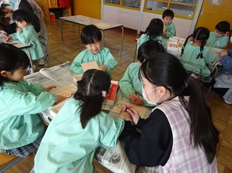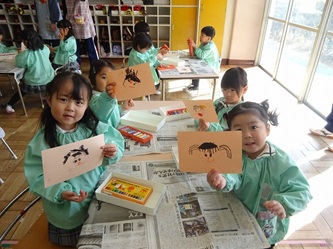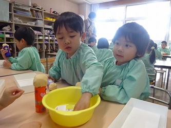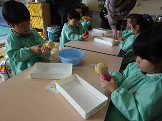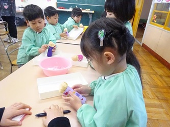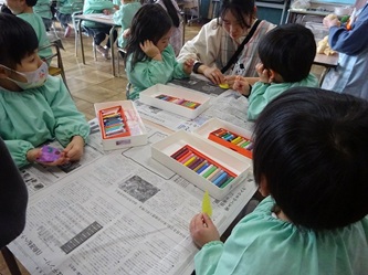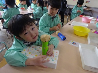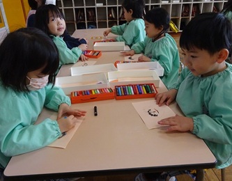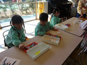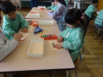年少さんの部屋では、幼稚園祭(作品展)に向けて、制作活動が行われていました。