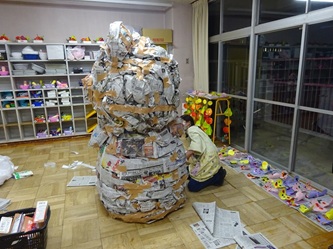 『幼稚園祭(作品展)』に向けて、各学年の先生方が、子どもたちと一緒に作品作りをしています。