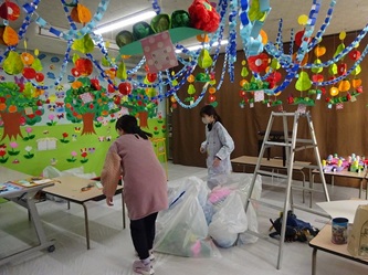 今日は半日保育で、午後から「幼稚園祭(作品展)」の準備です。