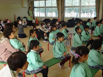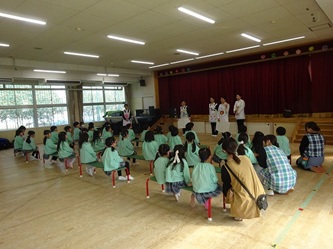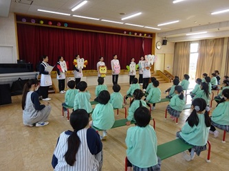 歯科衛生士をめざしている学生さんたちが、自分たちで考えた寸劇を、子どもたちに見せてくれました。歯磨きをして、歯を大切にしないといけないことを改めて気づかせるものでした。