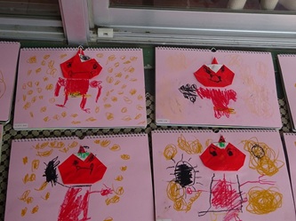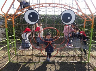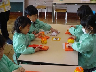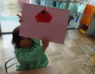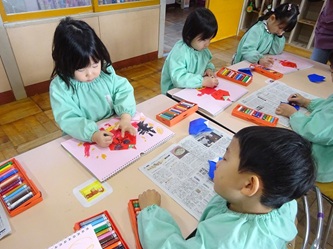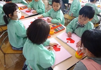 午前中、年少さんは「鬼と豆」の制作あそびをしていました。