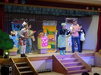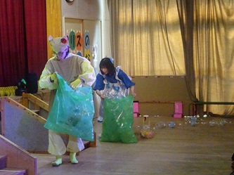 お楽しみとして、「劇団シンデレラ」のみなさんに、「アリスのすてきなレストラン」というSDGsや環境問題をテーマにした劇をみせていただきました!