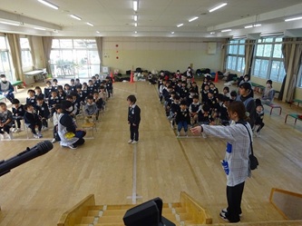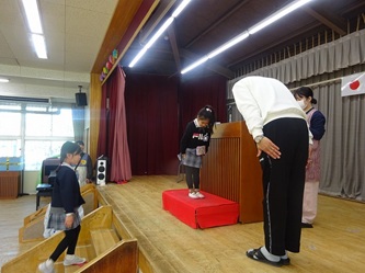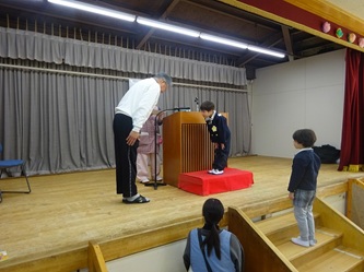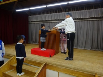 園長先生も加わって、壇上で一人一人、修了証書を受け取る練習をしました。