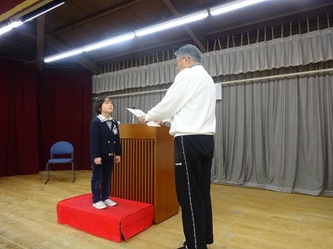 先生から修了証書の受け取り方や持ち方などの話がありました。
